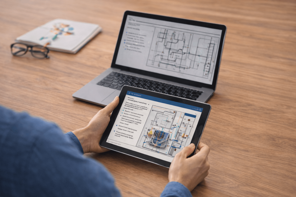 Training, Coaching und E-Learning für Unternehmen, die technisches Wissen sicher vermitteln, vereinheitlichen und nachhaltig verankern möchten.
