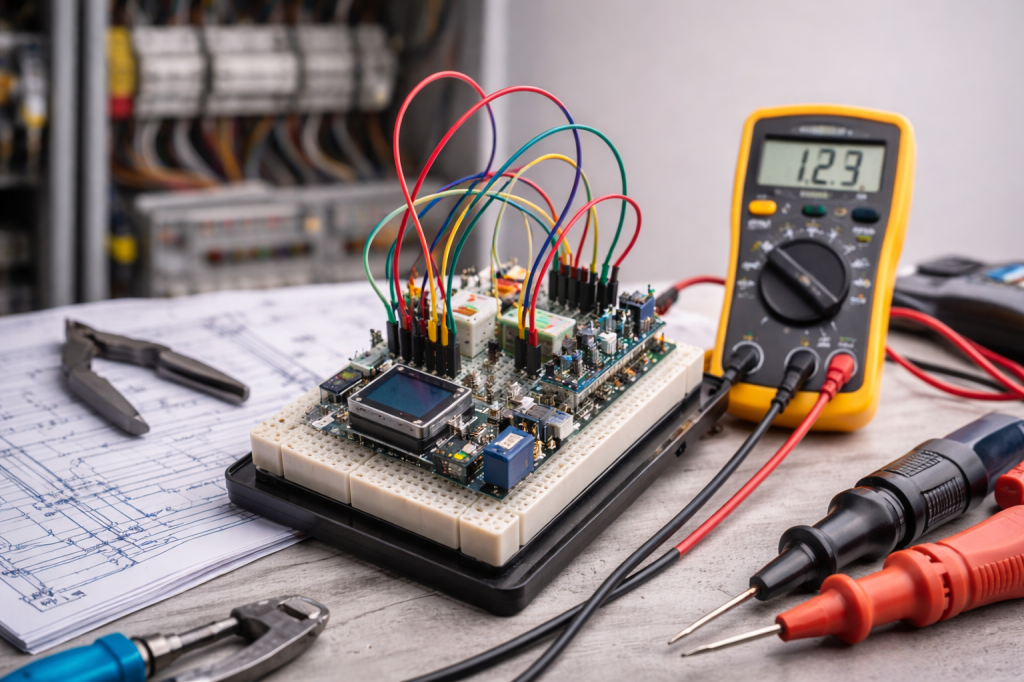 In unseren Grundlagenkursen zur Elektrotechnik vermitteln wir leicht verständlich die wichtigsten technischen Prinzipien von Spannung, Strom und Widerstand bis zu Schutzmaßnahmen und Messmethoden. Die Inhalte sind ideal für Einsteiger, Quereinsteiger oder Mitarbeitende aus nicht-technischen Bereichen, die ein besseres Verständnis für elektrische Abläufe gewinnen möchten. So schaffen wir eine sichere Basis für den beruflichen Alltag und weiterführende technische Schulungen.