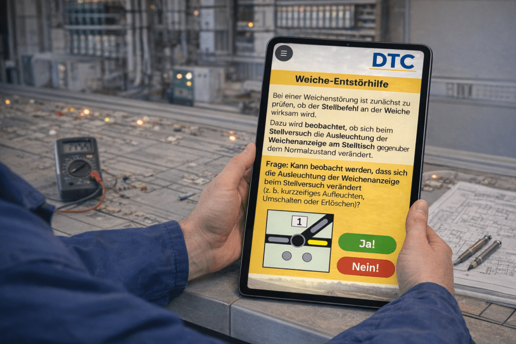 Die dargestellten digitalen Qualifizierungs- und Arbeitshilfen sind für den Einsatz im Umfeld der Leit- und Sicherungstechnik konzipiert. Sie dienen als Ergänzung bestehender Qualifizierungs-, Ausbildungs- und Instandhaltungsformate.
